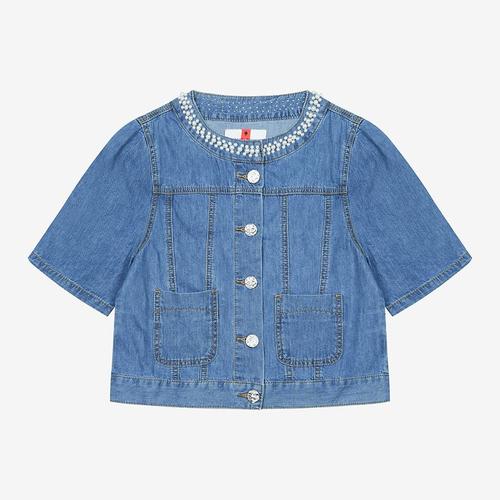 [베스띠벨리]25S/S 넥 진주 데님 크롭 자켓 BKJKE2151