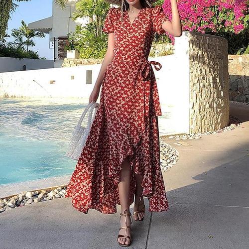 TEMU 여성 여름 레드 물방울 무늬 바캉스 스타일 롱 드레스