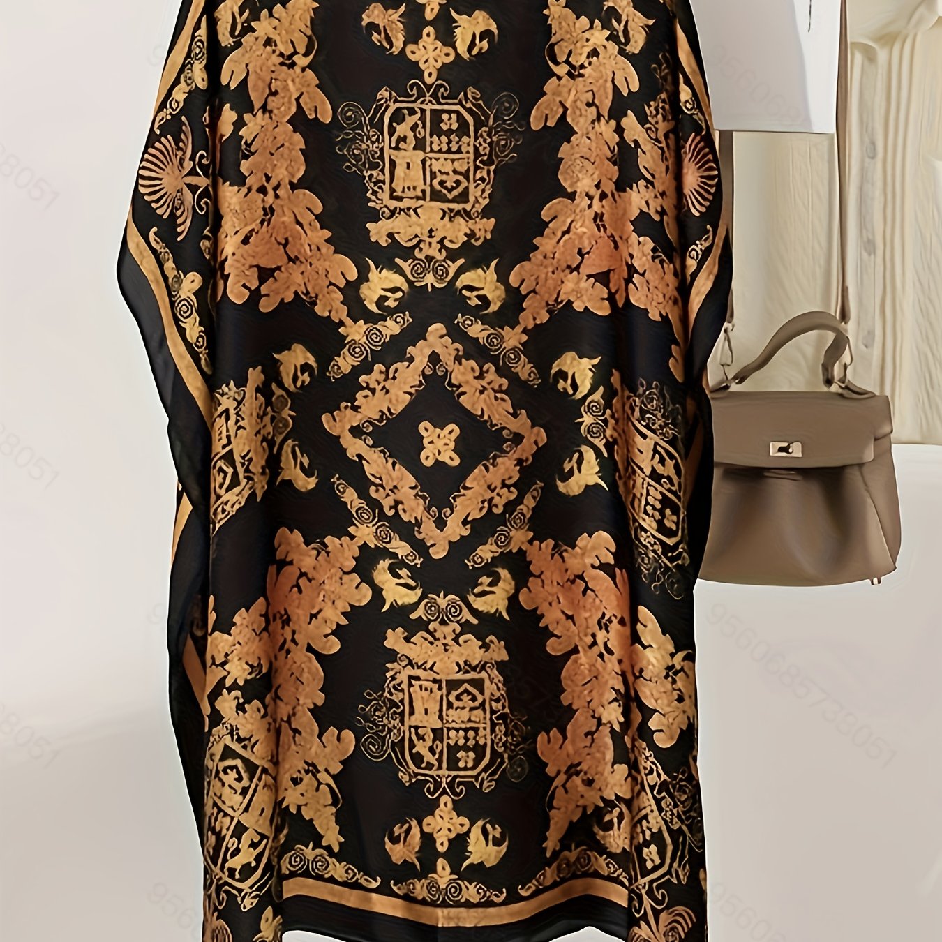 TEMU 플러스 사이즈, 플러스 사이즈 라이트 럭셔리 빈티지 프린트 봄/여름 얇은 모조 풀오버 루즈 셔츠 드레스