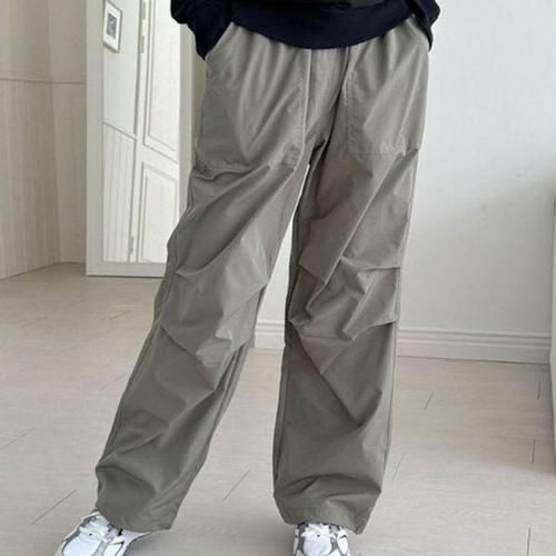 [에이치플러스몰]레이디스고무줄 트라우저 일자 트라우저 짐웨어 바지 폴리혼방 올데이 데일리룩 프리사..