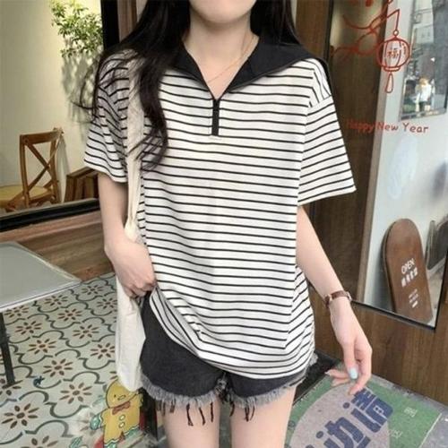[엄지척]반팔티셔츠 스트라이프 의류 메이비굿 집업_19599014_667501