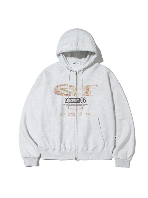 [이스케이프프롬] 이스케이프프롬 플라워 ESCF 로고 콜라주 프린트 투웨이 후드집업 화이트멜란지