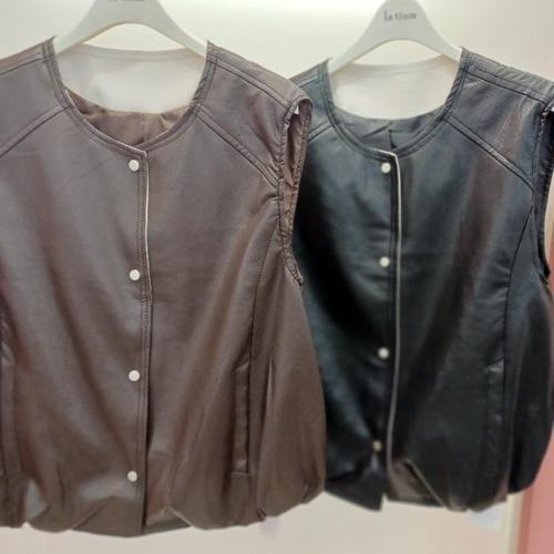 [라티움]라티움 HC34 부드러운느낌 밑단밴딩 흰색배색처리 짧은 페이크가죽 조끼 T2533vt05 (41298915)