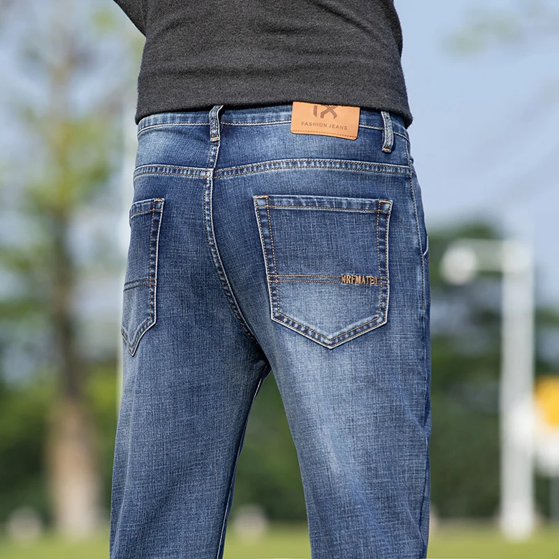 2024 새로운 가을 남성 블루 스트레이트 레그 청바지 비즈니스 캐주얼 코튼 스트레치 데님 바지 남성 브랜드 플러스 사이즈 40 42 44