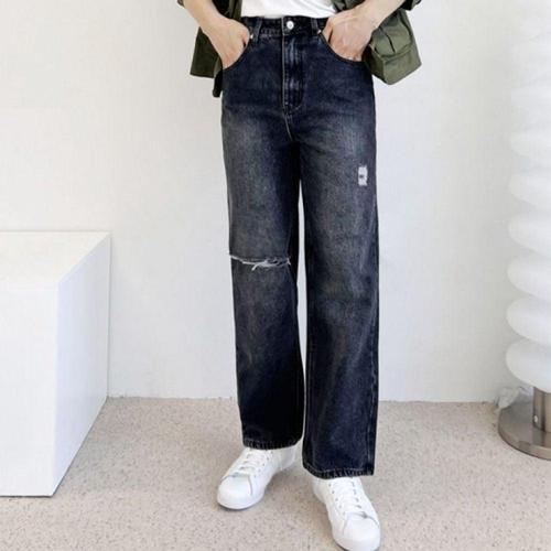 [모노무드]LMO 찢청바지레이디스 그레이진 롱핏 베이직 트라우저