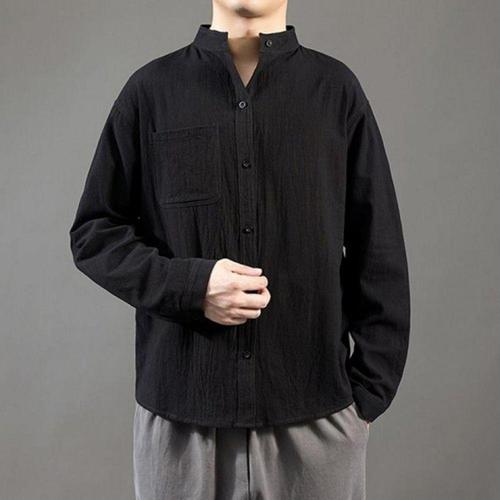 남성 린넨 차이나카라 여름 긴팔 캐주얼 데일리 셔츠 WFLMFEQ