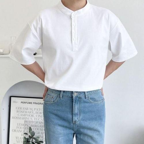남자 반팔 티셔츠 여름 반팔티 헨리넥 카라 차이나넥 데일리 WFN3KUJ