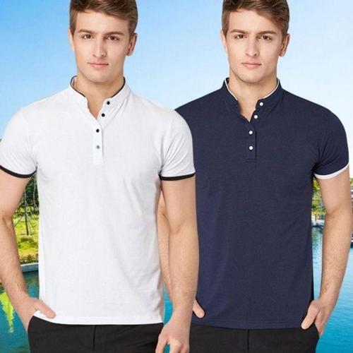 여름 고급 남자 카라 반팔 쿨티셔츠 코튼 차이나 넥 피게티셔츠 라운드 냉감 아이스 골프웨어