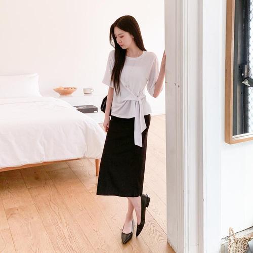 [옷자락] 여자 데일리 오피스룩 찰랑 꼬임 리본 포인트 반팔 티셔츠