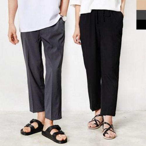 [에이치플러스몰]여름 빅사이즈 남여공용 허리밴딩 긴 쿨 바지 찰랑 남