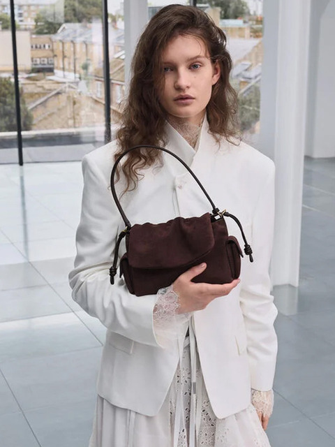 [찰스앤키스] 카이 리사이클 스웨이드 러치드 플랩 슬라이드 포켓 탑 핸들백 CK2-20671785-1