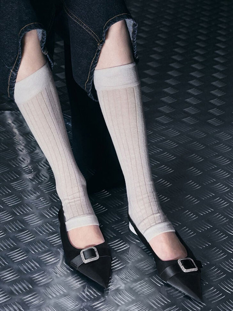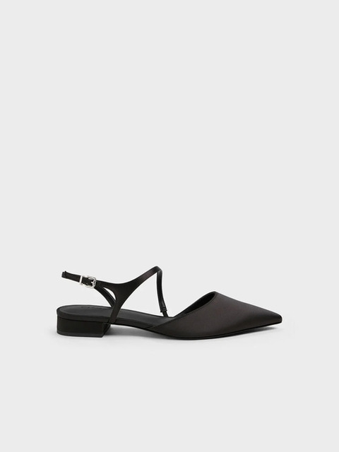 [찰스앤키스] 새틴 크리스탈 버클 포인티드 토 슬링백 플랫 3colors CK1-70381147