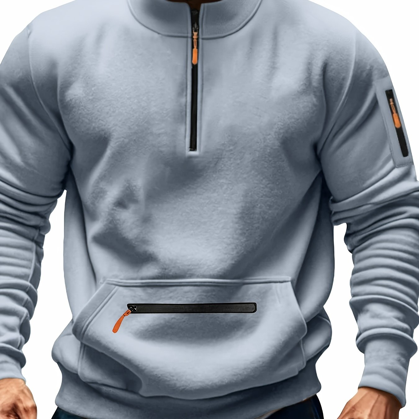 TEMU 남성용 하프 지퍼 스포츠 후드티, 캐주얼 솔리드 컬러 긴팔 풀오버, 봄 가을 겨울 및 야외 활동용 가벼운 스트레치 니트 소재 선물용
