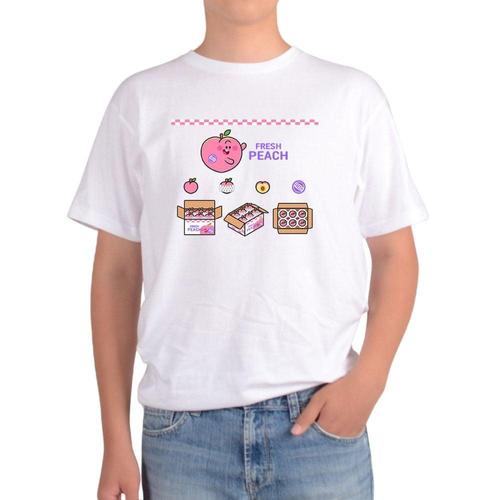 [에이치플러스몰]길단 반팔 USA핏 복숭아 과일과게 농산물시장 천도복숭아그림 다양한색상 전사이즈