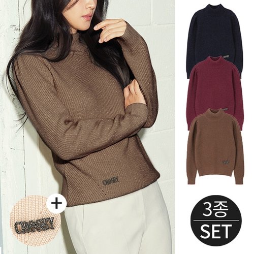 [로코엘라] 플로 메리노울 여성 모크넥 니트 3종세트