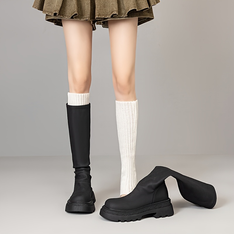 TEMU 2024년 여성용 겨울 무릎 하이 부츠 - 단색, 중간 굽, 두꺼운 직물 안감, 고무 밑창, 둥근 앞창, 지퍼 잠금, 손 세탁 가능/직물 안창 포함.