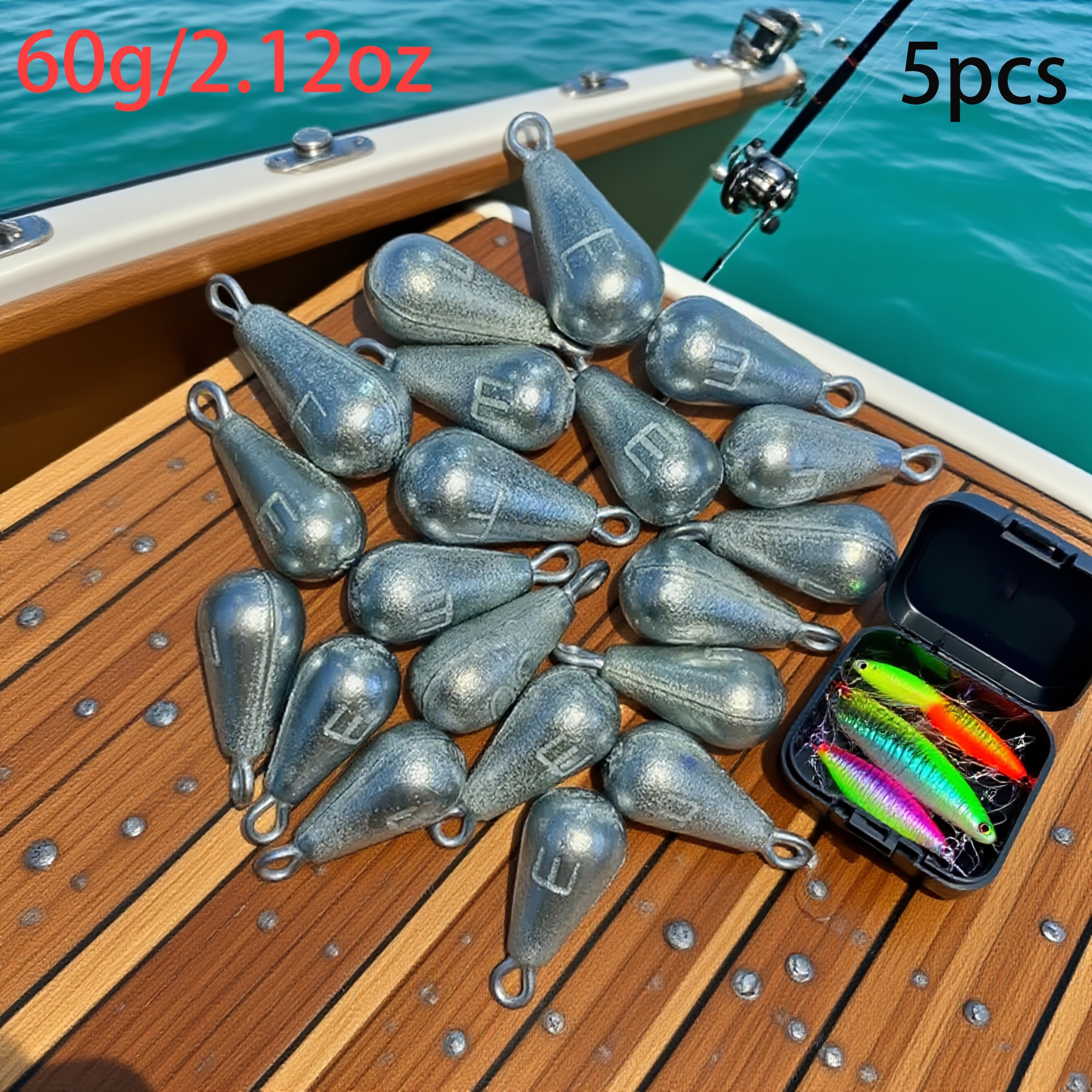 TEMU 갈바나이징 모조 납 싱커 5개 세트, 링 포함, 물방울 모양 철제 싱커, 정밀 캐스팅 및 다목적 낚시용 철제 싱커, 30g/50g/60g/80g/100g/120g, 1.06-4.23oz, 낚시꾼 장비,낚시용품,링 싱커,무게 추,부식 저항성,내구성 있는 싱커,무게 추가 장비,낚시 애호가들,야외 모험가들