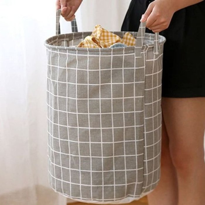 엄지척 격자무늬 천 빨래바구니 장난감 세탁물 바스켓 회색
