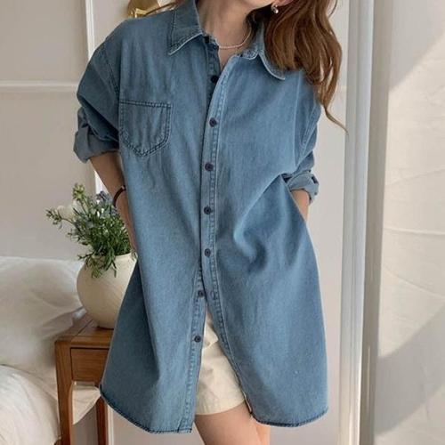 [엄지척]숏 데님원피스 미디 여자셔츠 오버핏 루즈핏 청남방_19643310_667501