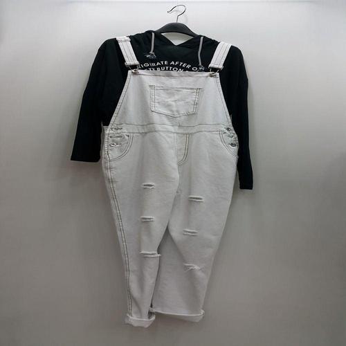 J4695 빈티지 찢청 화이트 멜빵 바지 점프슈트 원피스 WFL8D91