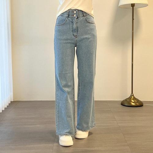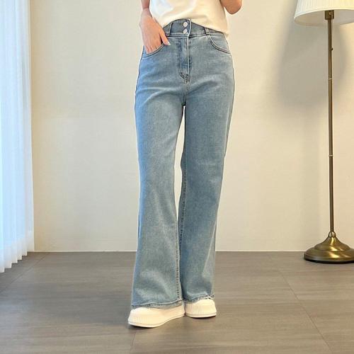 여자 반하이웨스트 넓은 투버튼 청바지