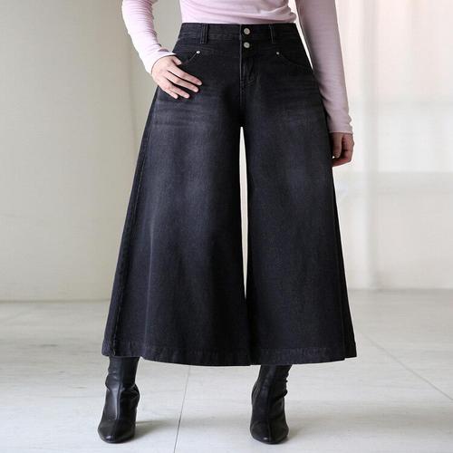 [스타일온미][스타일온미] 버니든 백밴딩 투버튼 큐롯 와이드 데님 팬츠