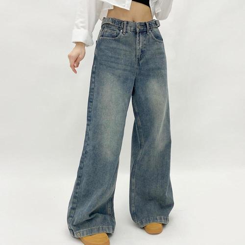 [다잇템]여자 워싱 2WAY 와이드핏 밑버튼 비조 청바지