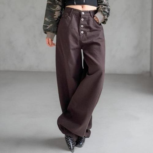 [다잇템][다잇템] 여성 면혼합 키치무드 단추 넓은 청바지_23411043_588872