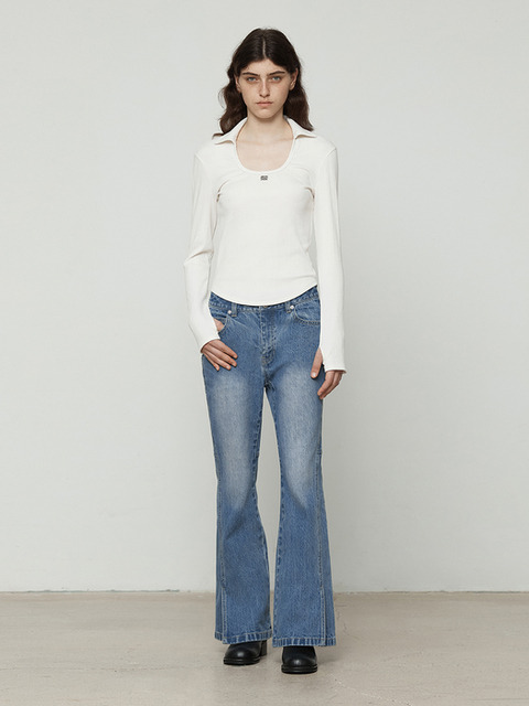 [커렌트] 체인트윌 세미부츠 슬릿 데님 [인디고 블루]