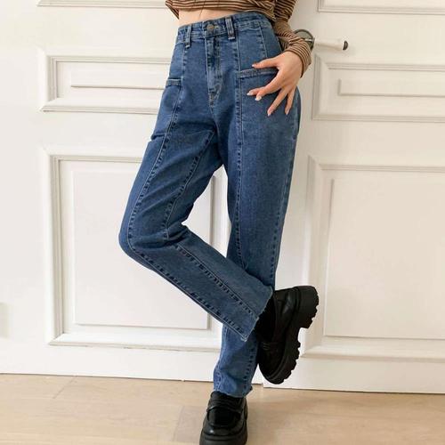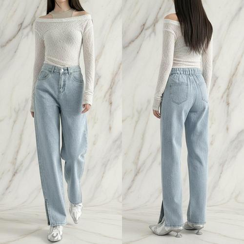 |CCP958B|여성 하이웨스트 뒷밴딩 슬릿 디테일 세미와이드 청바지
