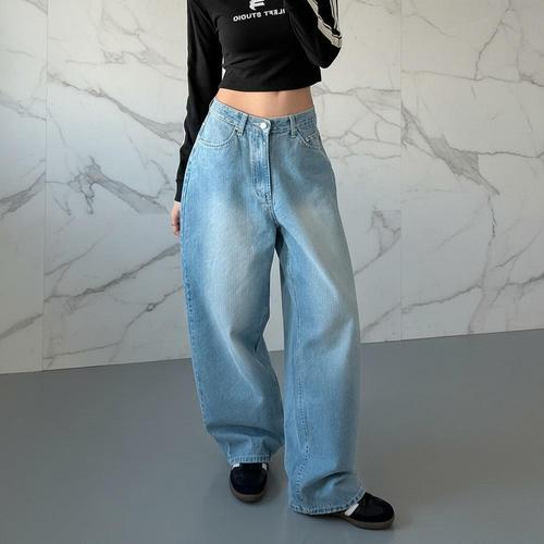 [신상오픈런]여성 하이웨스트 와이드핏 아이스워싱 청바지