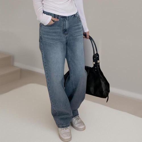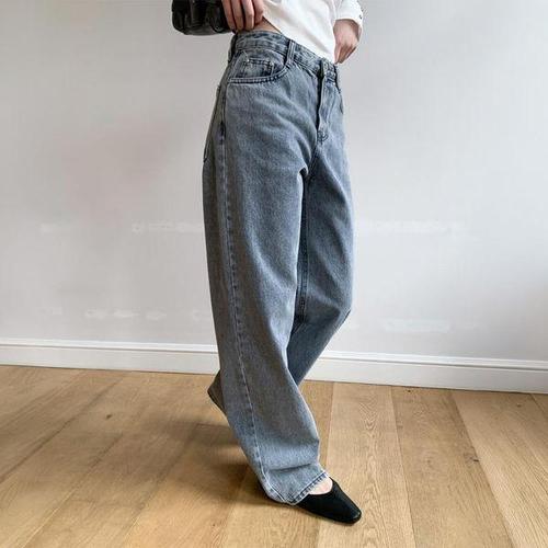 여성용 와이드핏 일자 청바지 하이웨스트 데님 데일리
