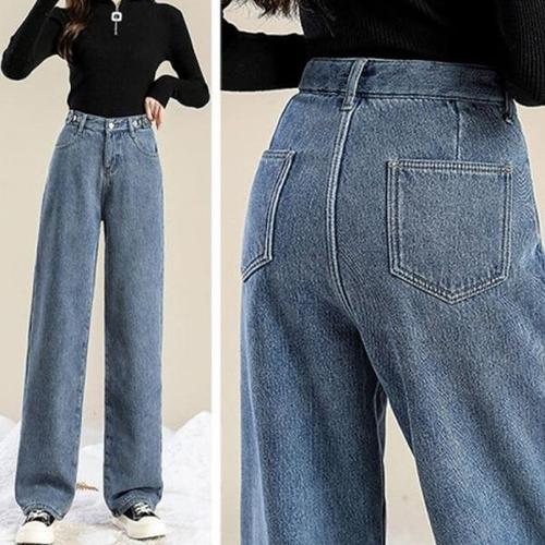 lofei 여성 하이웨이스트 와이드 데님팬츠 데일리 캐주얼 편안핏 양털안감 KZ01