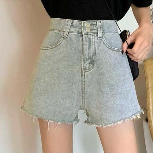 [다잇템]여자 핫팬츠 워싱 넓은 블랙진 밑컷팅 청반바지