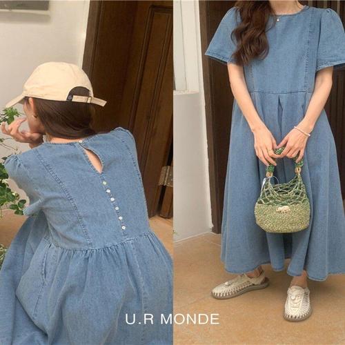 [모노무드]모노무드 xmfl-2 여성 여름 원피스 봄 반팔 데님 청치마 빈티지