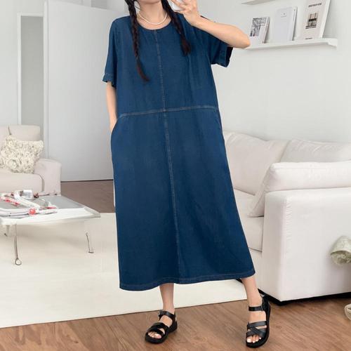 [더바디시크릿]리사 데님 루즈핏 반팔 롱원피스