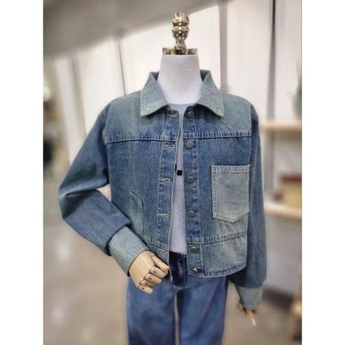 [에이치플러스몰]셔츠 기장 반팔 크롭 봄패션 여성봄 여성 데님 청자켓