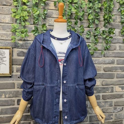 캐주얼 9부소매 데님면 청 셔츠 후드 점퍼