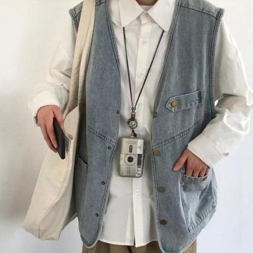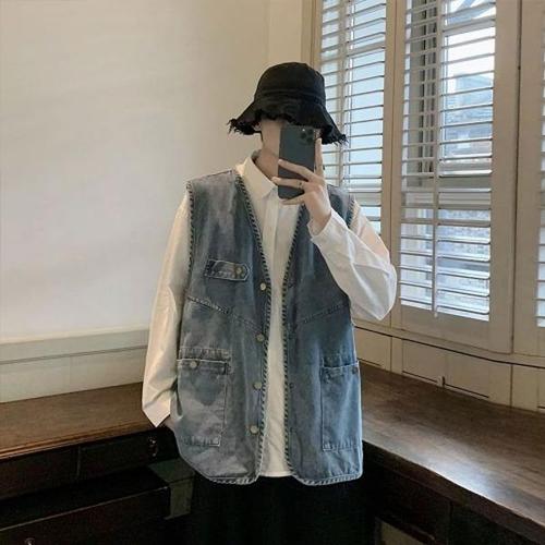 청조끼 남성 케주얼 외출 루즈핏 시티보이 스타일 데님 조끼
