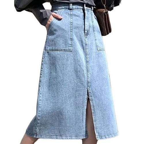 POMTOR 여름 데일리 빈티지 캐주얼 롱 청 치마 데님 스커트