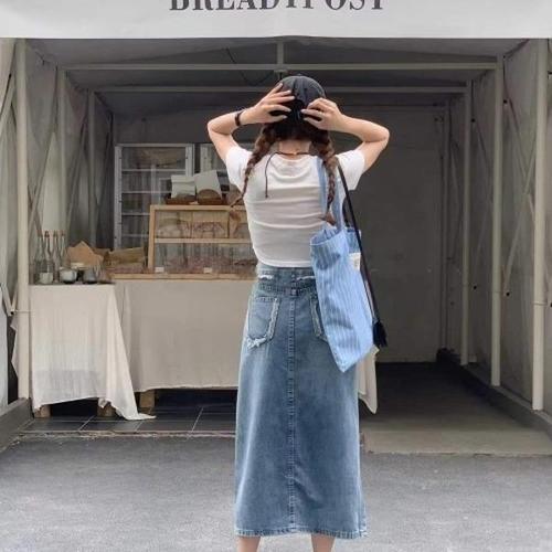 [셀러허브_여성트랜드패션]ONM 여성 스커트 봄 가을 롱 데님 하이웨스트 청치마