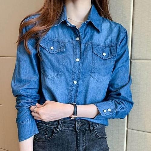 [엄지척]여자 청셔츠 패션 코디 긴팔 데님 청남방_19659333_667501