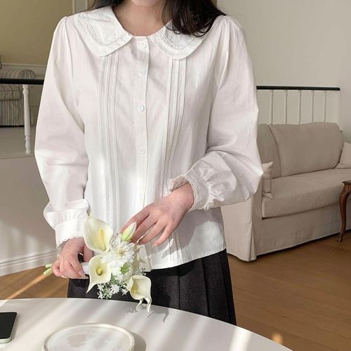 [옷자락] 여자 러블리 레이스 핀턱 데일리룩 카라 블라우스
