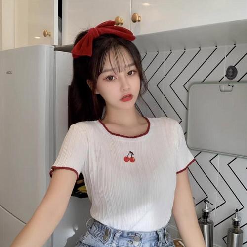 [오너클랜]인기상품 여성 체리 자수 반크롭 반팔 여름 티셔츠 데일리 예쁜 [WE78908_250918]