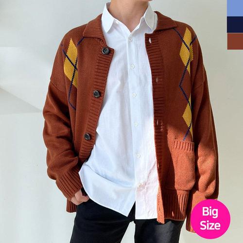 [파파브로]남성 오버핏 사각체크 브이넥 니트 가디건 SO-CA-Q072