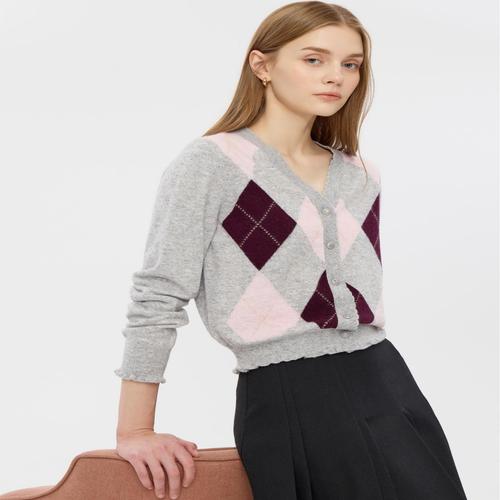 질스튜어트 뉴욕 여성 그레이 체크 울캐시미어혼방 가디건 (JSSW6A130G1)