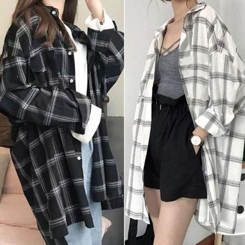여성 오버핏 체크 셔츠 롱 남방 HH-D49