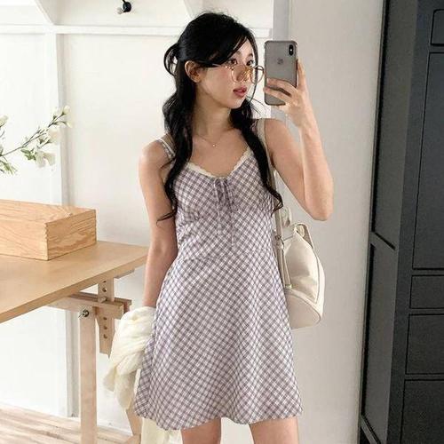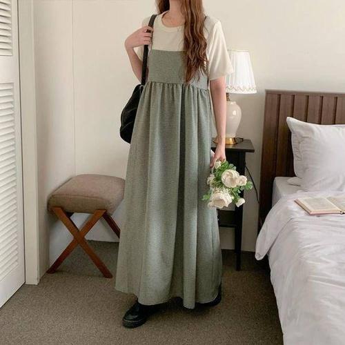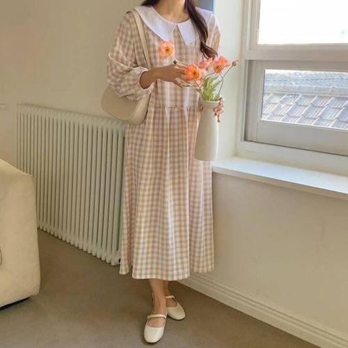 [에이치플러스몰]체크 셔츠 데님 롱니트 롱원피스 여름 카라 온