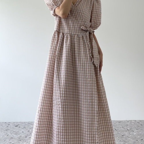 하객 체크무늬 우먼맥시 V넥 돌잔치 오피스 버튼 원피스룩 프리미엄 WFJIWM6