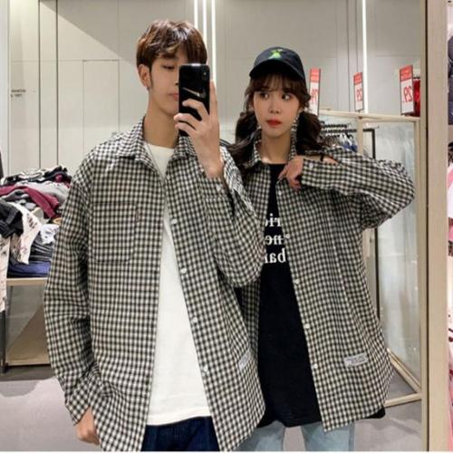 [에이치플러스몰]셔츠 신상셔츠 남녀공용 가을 체크셔츠 긴팔 무지